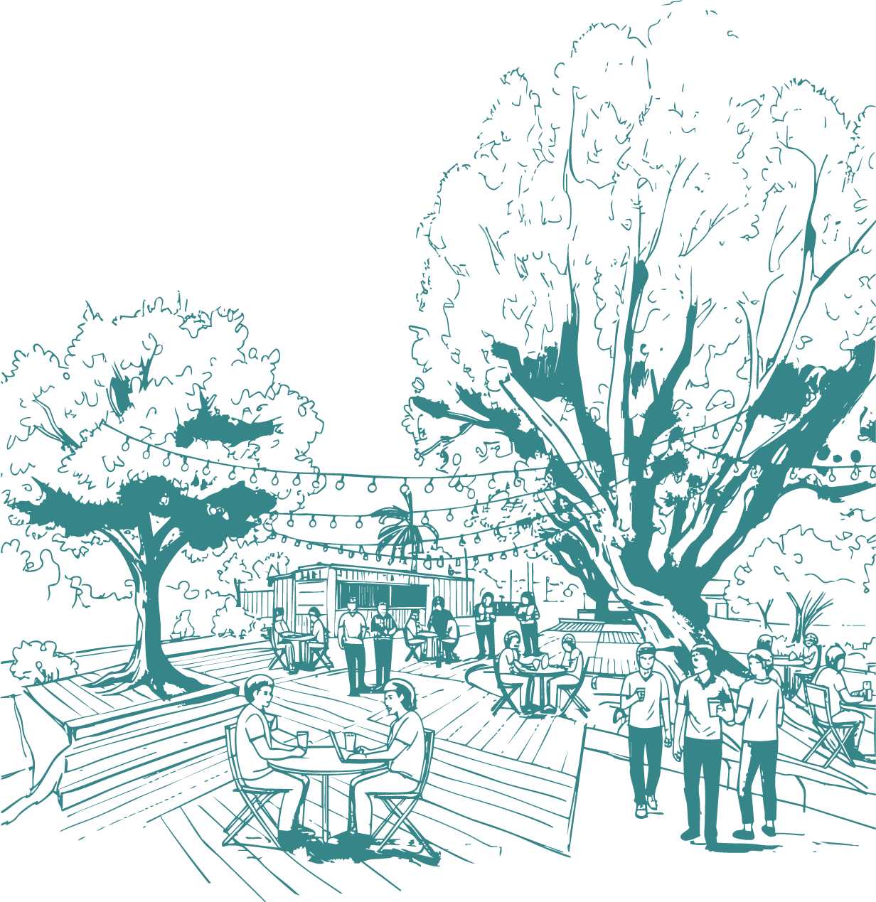 The Triangle is a neighborhood hangout built for Miami — a place for locals, families, and creatives to gather under the trees, sip great cocktails, eat good food, and feel at home.